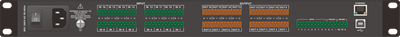 E-D2424是一款24進24出的自動混音矩陣,配備24路模擬輸入和24路模擬輸出,內置反饋抑製,自動混音,矩陣混音,均衡器,分配器,壓縮器等DSP功能,支持Dante網絡音頻功能擴展,通過USB免驅連接電腦軟件控製或RS232/TCPIP連接中控遠程控製,適合用在各種場合的擴音工程。